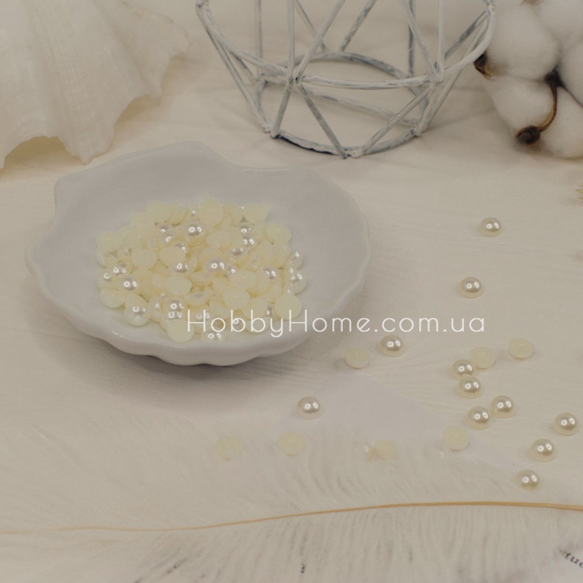 Кремові напівбусини 8 мм – ніжний і універсальний матеріал для декору та хендмейду. Їхній перламутровий блиск додає елегантності будь-яким виробам, а плоска основа дозволяє легко приклеювати напівбусини на тканину, картон, фетр, пластик чи дерево.
