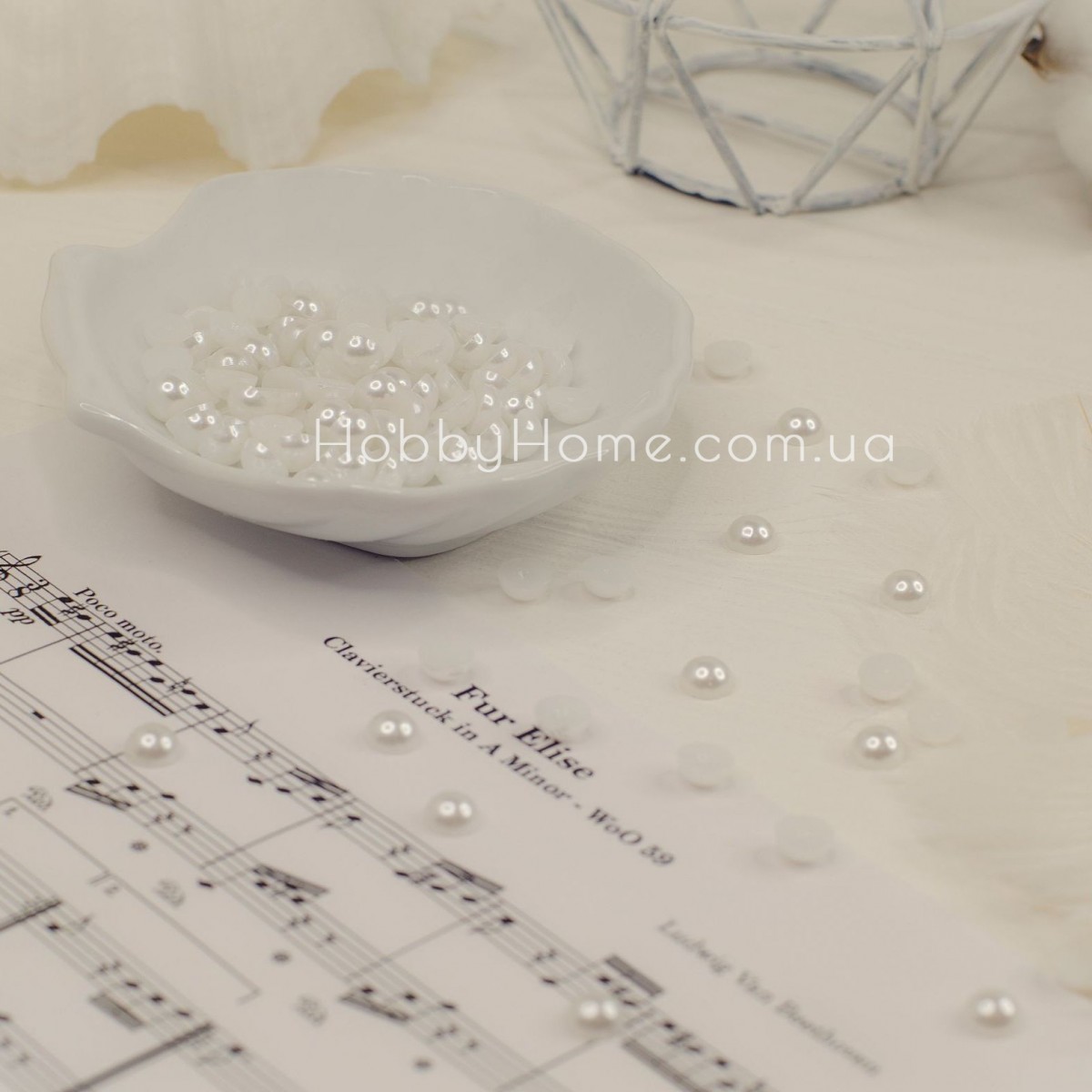 Білі напівнамистини 8 мм – це стильний і універсальний матеріал для рукоділля та декору. Вони мають перламутровий блиск і плоску основу, завдяки чому легко приклеюються до будь-яких поверхонь: тканини, фетру, картону, пластику чи дерева.