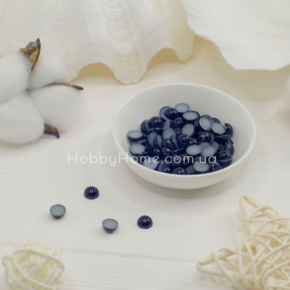 Чорні напівнамистини 8 мм – універсальний матеріал для рукоділля, який використовується як очі для іграшок, ляльок та амігурумі. Вони мають напівсферичну форму з плоскою основою, тому легко кріпляться на клей до різних матеріалів: фетру, тканини, фоамірану, картону чи дерева.