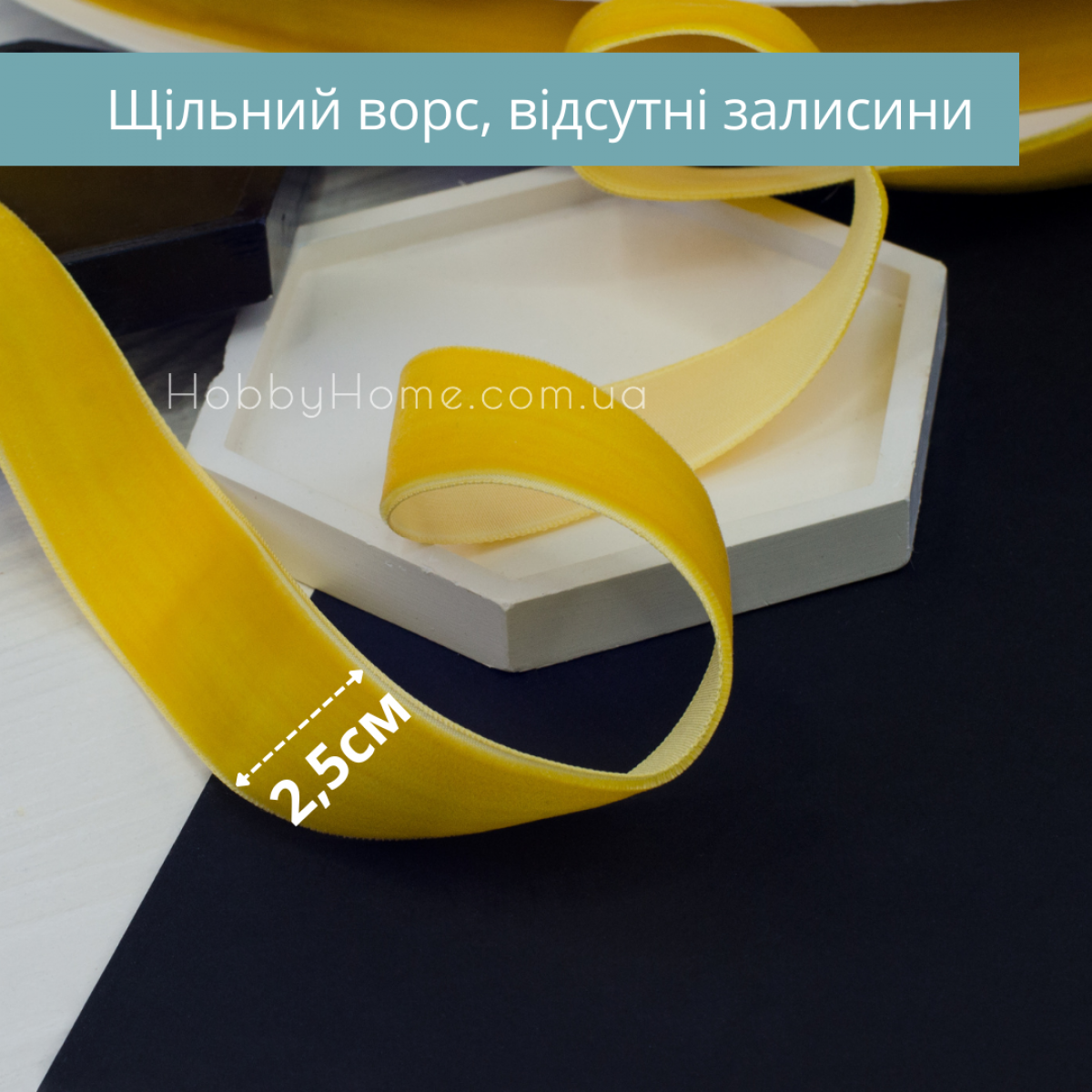 | тип | оксамитова одностороння стрічка 2,5 см жовтого кольору |