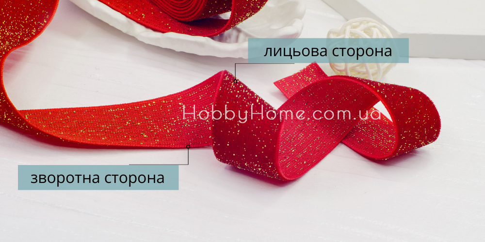 | тип | оксамитова одностороння стрічка 2,5 см червоного кольору з золотим люрексом |