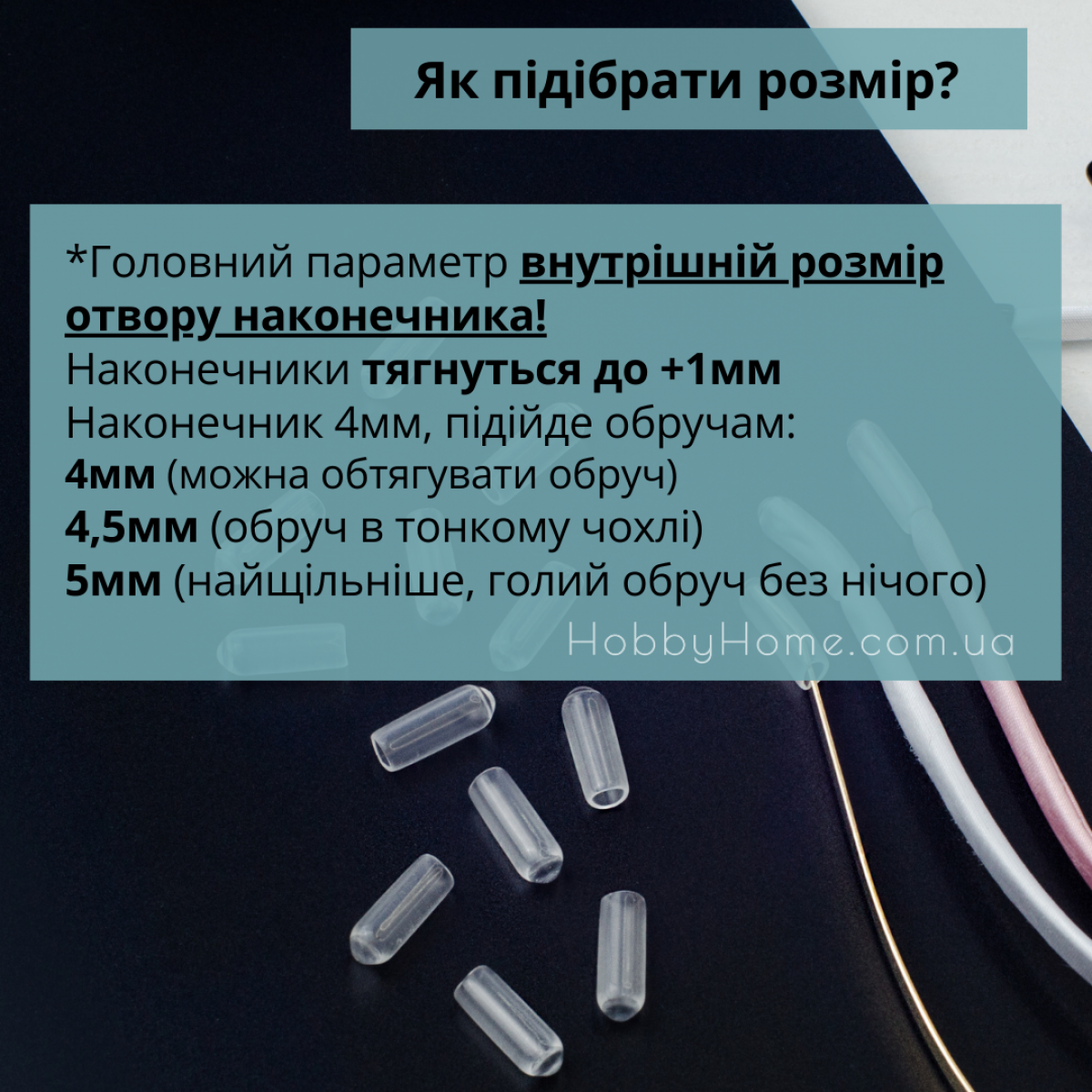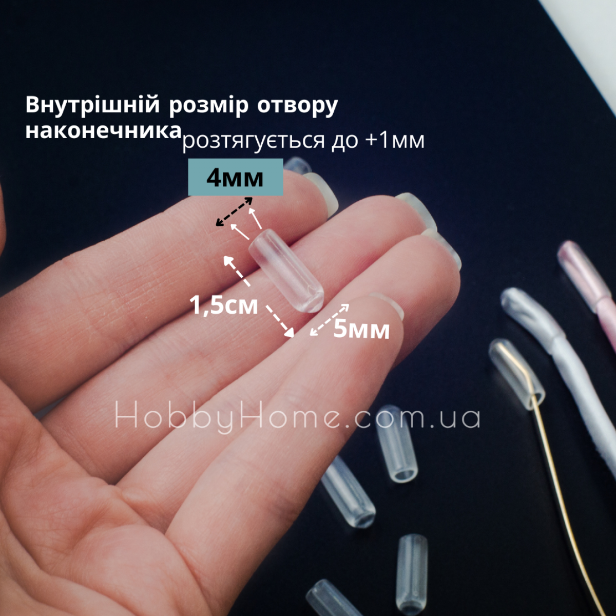 Використовуються як захисні гумові ковпачки, щоб кінчики фурнітури не дряпали шкіру голови, наконечники стримують фурнітуру аби вона не ковзала
