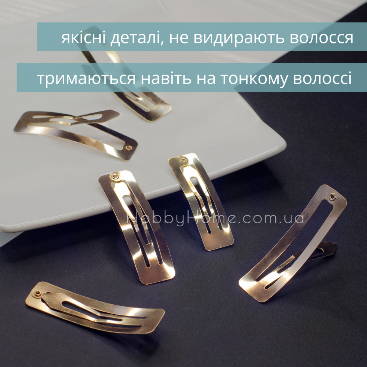 Прямокутна заколка клік-клак 6 см золотого кольору — універсальна металева заготовка для створення аксесуарів для волосся своїми руками. Завдяки збільшеній довжині ідеально підходить для густого волосся, довгих пасом та більш об’ємних зачісок.