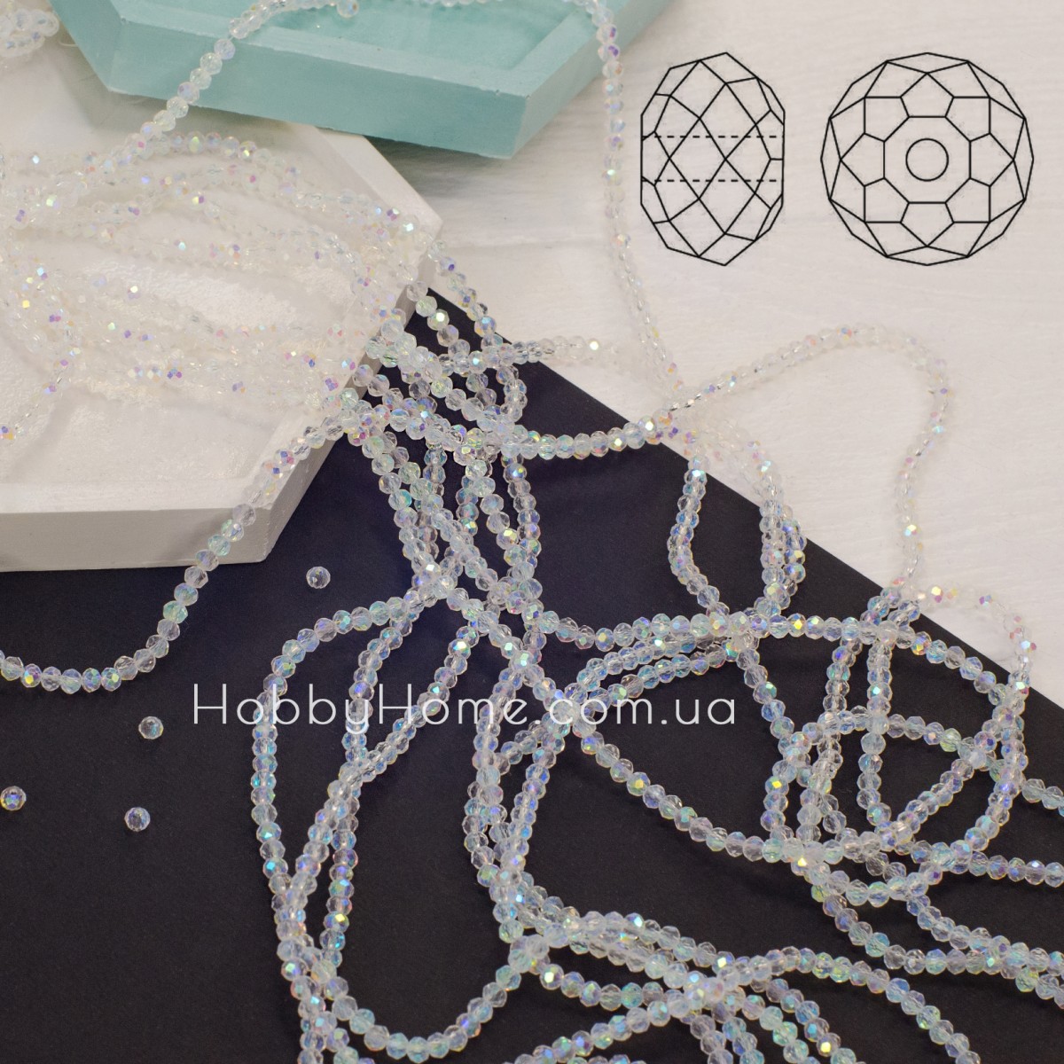 | тип | кришталеве намисто для ювелірних виробів, творчості, рукоділля. Колір прозорий з АВ |
