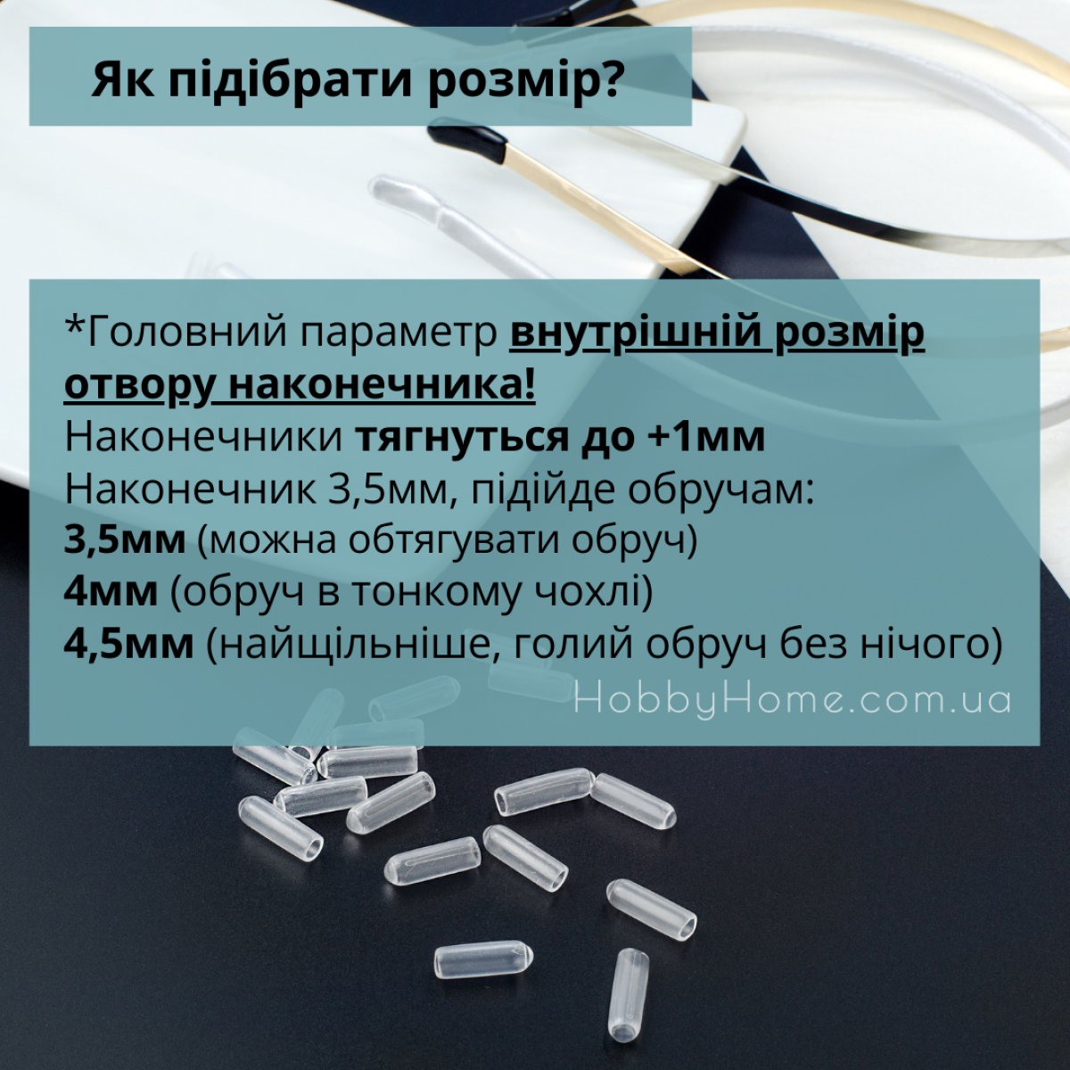 Використовуються як захисні гумові ковпачки, щоб кінчики фурнітури не дряпали шкіру голови, наконечники стримують фурнітуру аби вона не ковзала