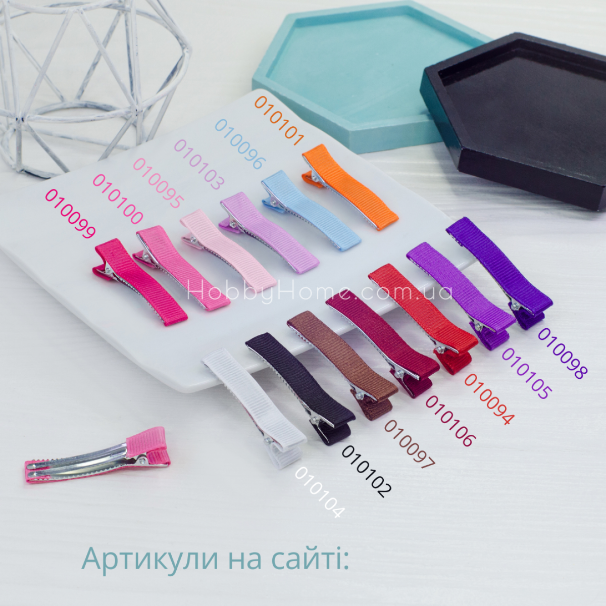 | тип | Шпилька крокодильчик, основа для створення аксесуарів для волосся в репсовій стрічці. |